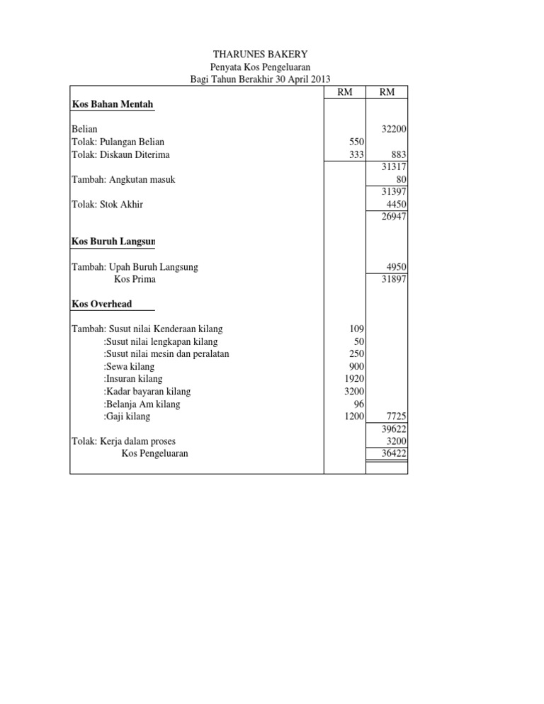 Penyata Kos Barang Di Kilang Docx Kilang Roti Shaf Penyata Kos Barang Di Kilang Bagi Tahun Berakhir 31 Disember 2014 Rm Rm Bahan Langsung Inventori Course Hero